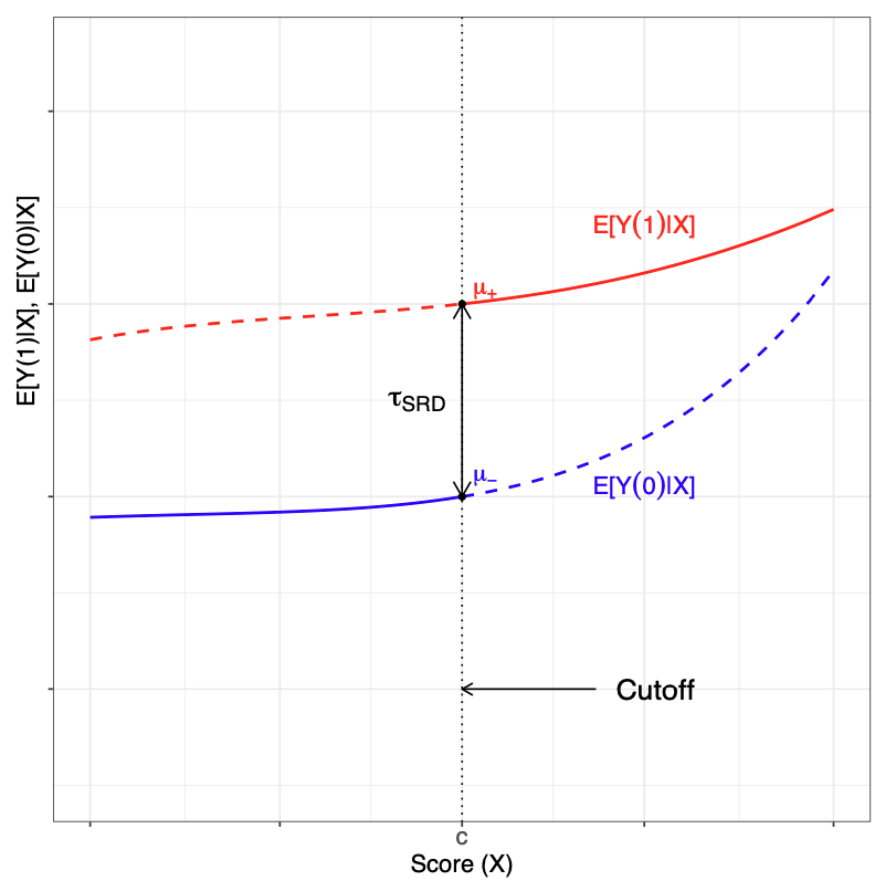 \(\tau_{SRD} \equiv E[Y_i(1) - Y_i(0) | X_i = c]\)