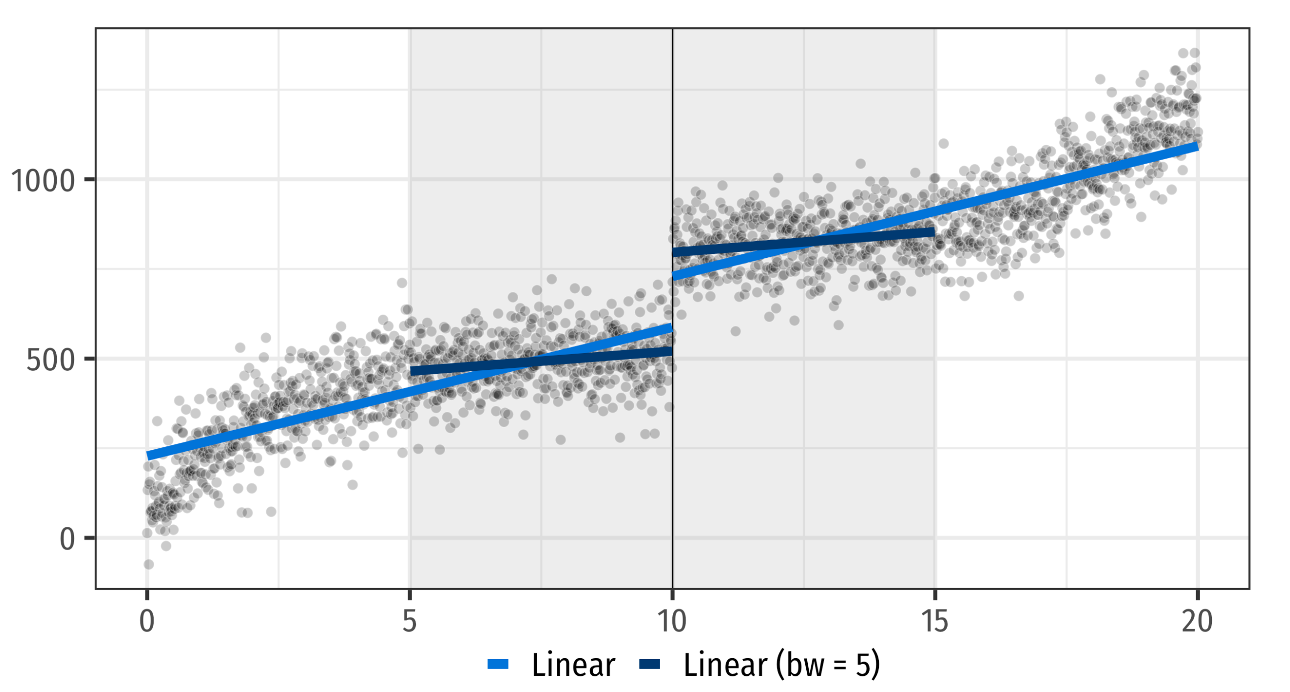 Estimate: \(\widehat \tau_{SRD} = \widehat \mu_+ - \widehat \mu_-\)