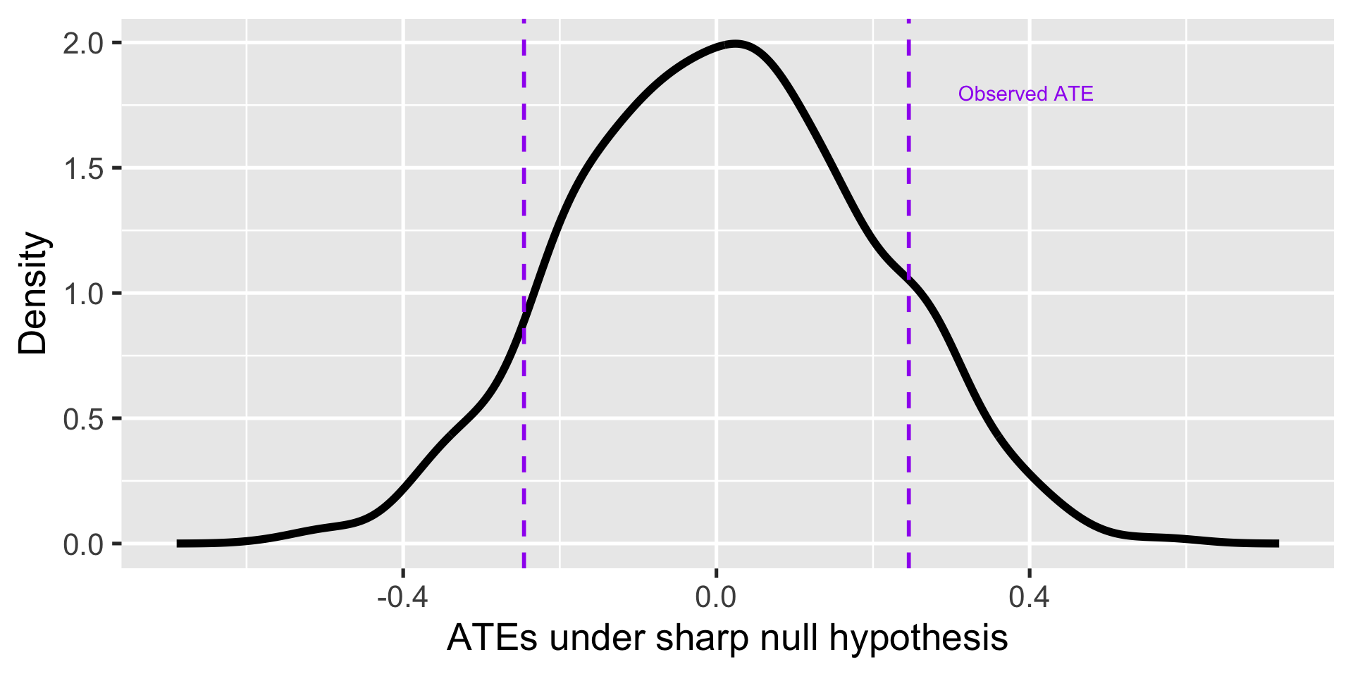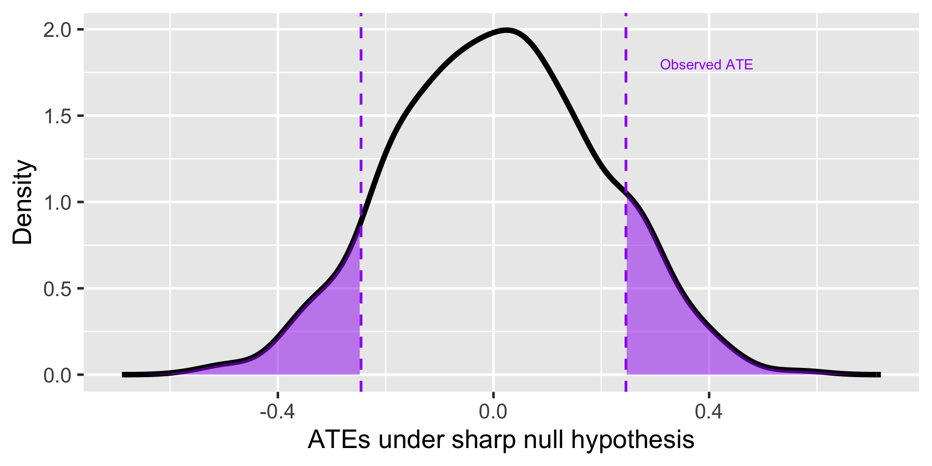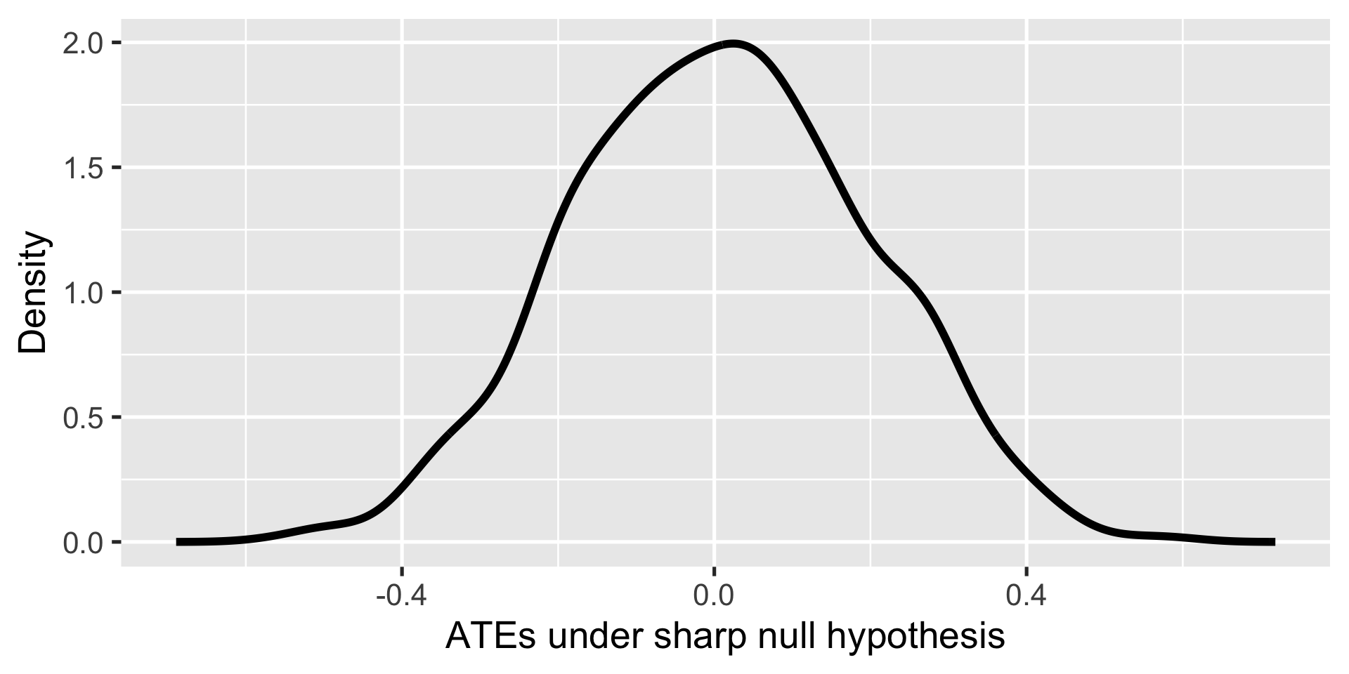 Known probability distribution of scores within \(\mathcal{W}\) (\(\equiv\) random assignment)