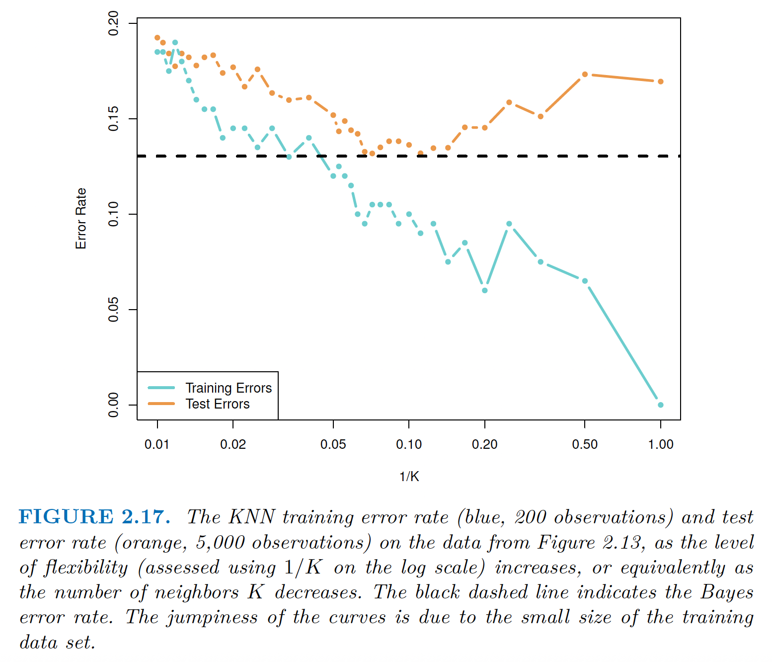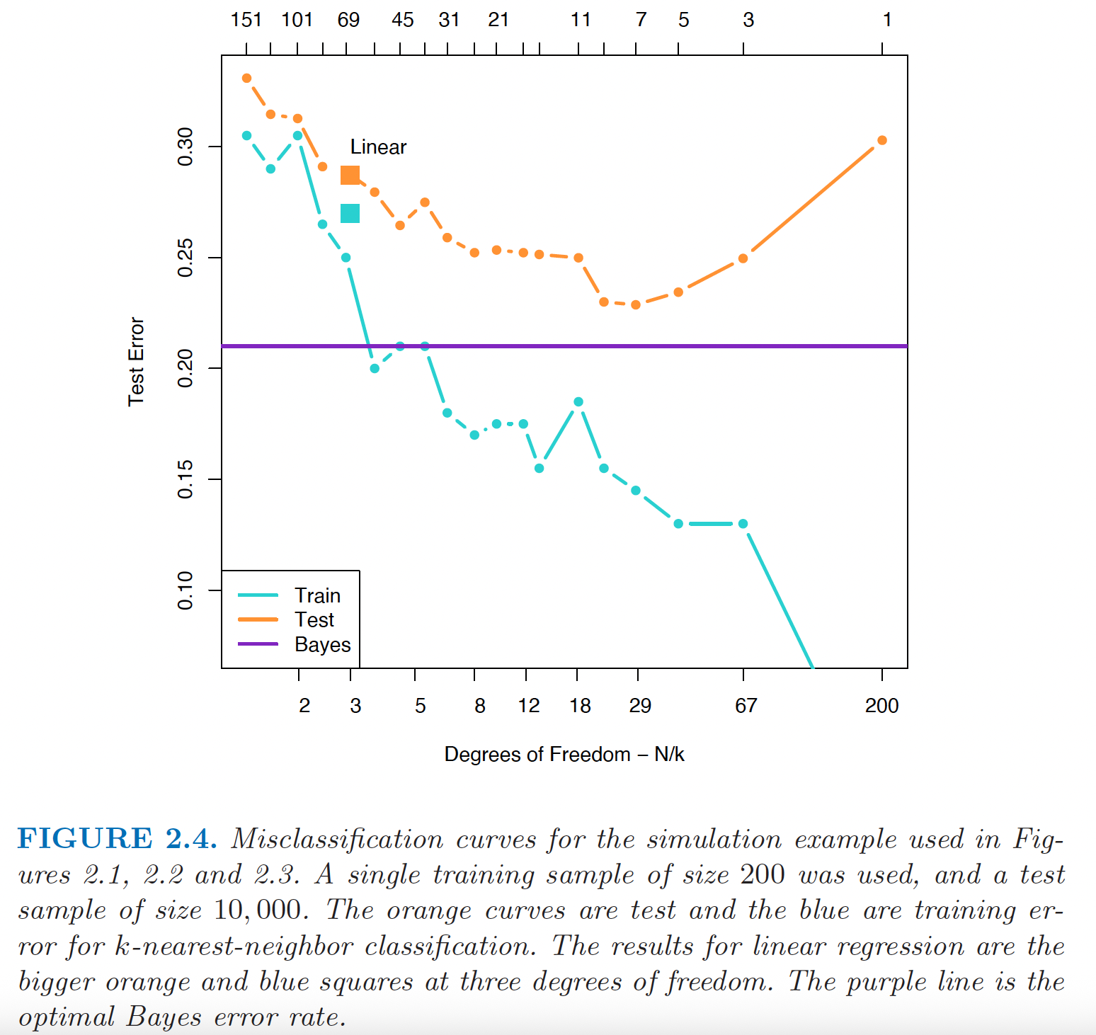 Where \(N_k (x)\) is the neighborhood of \(x\) defined by the \(k\) closest neighbors in the training sample.