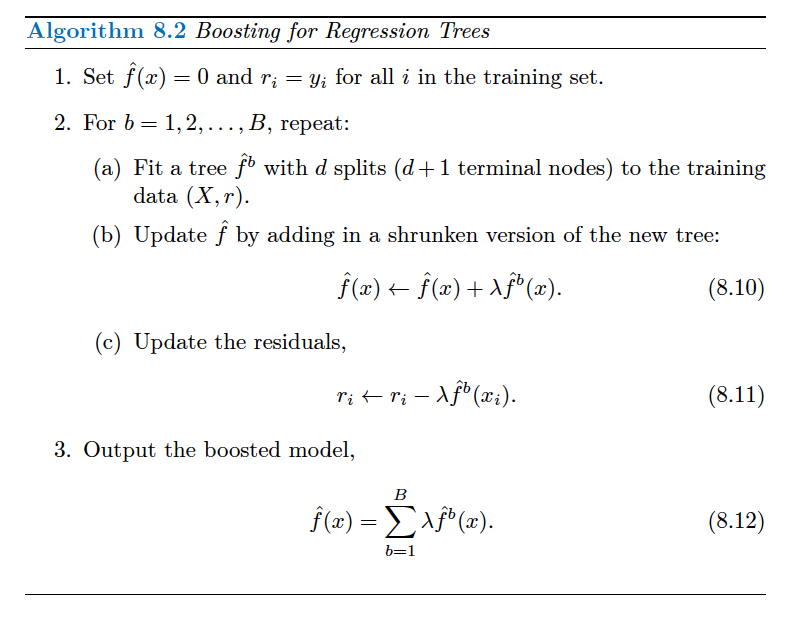 For \(b = 2, \ldots, B\) replace the outcome with the residuals from the previous tree